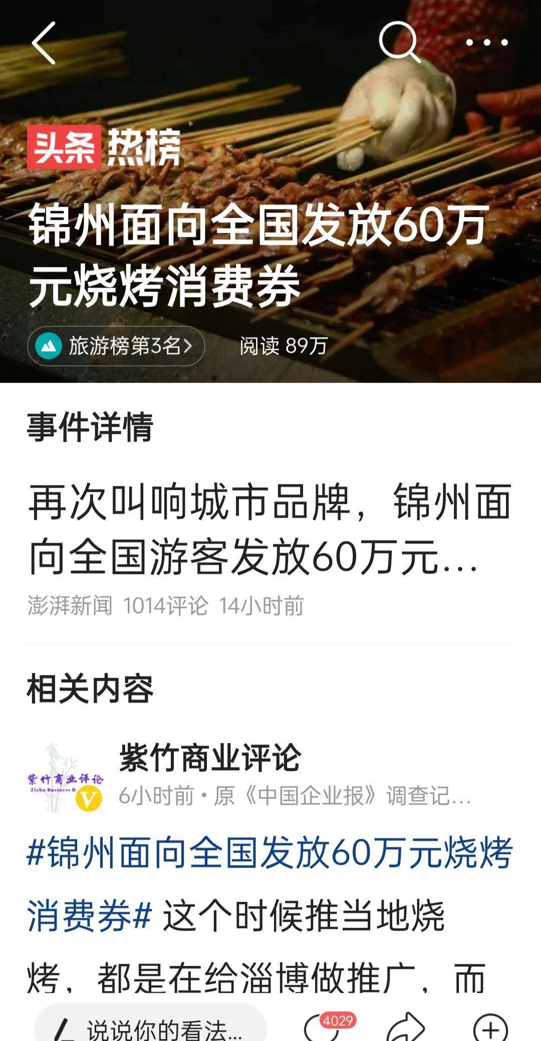 为了促进消费,锦州面向全国发放60万的烧烤消费券,这是一个福利,而且是面向全国的,锦州政府为了当地淄博烧烤,刺激人们消费,真的是下了血本的。