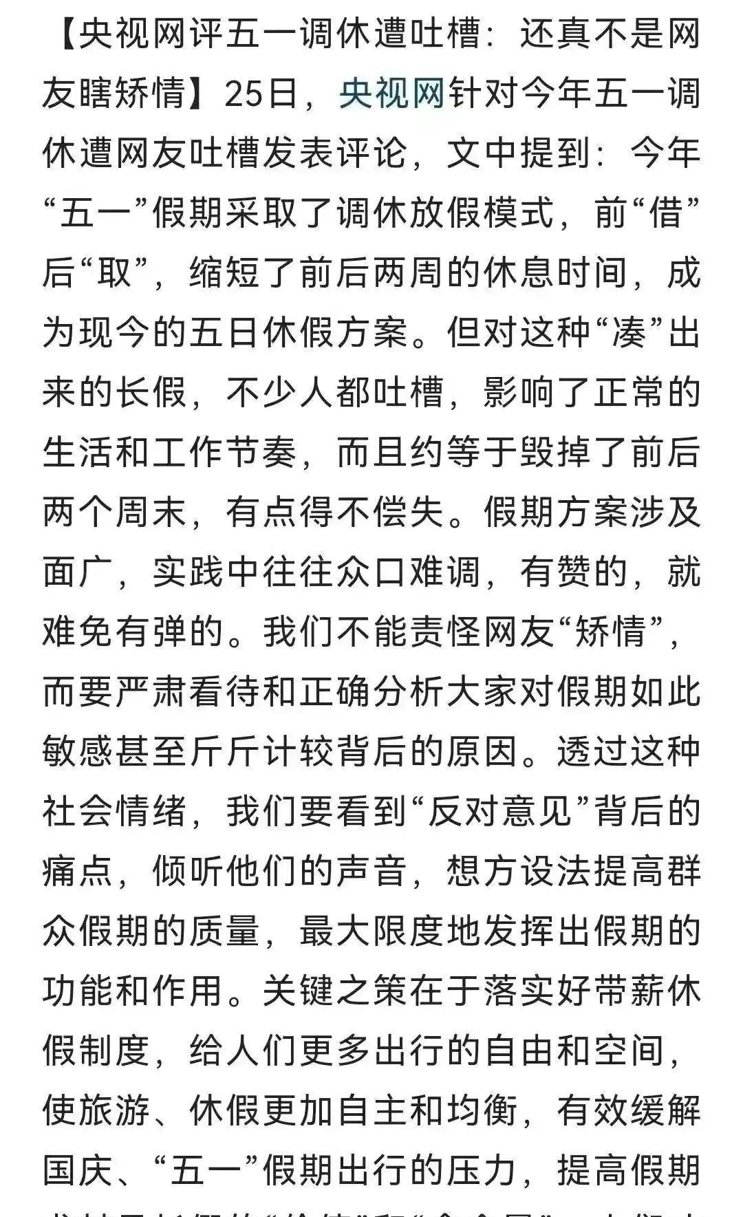 央视也点评了这个调休方案。大众的不满应该是有原因的。我们真的需要这个调休方案么?或许这个问题需要从多个角度来考虑。