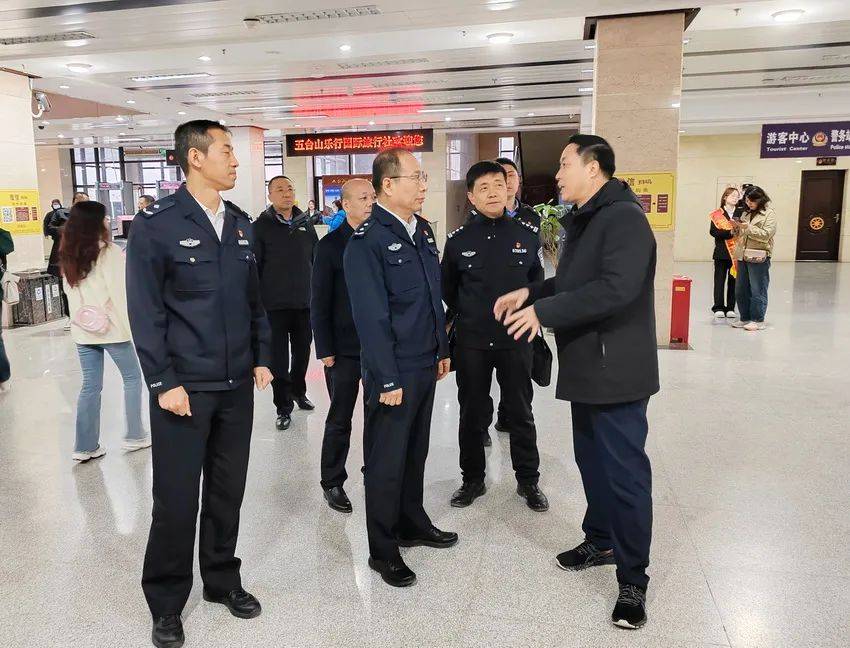在五台山景区,史红波同志一行先后赴景区游客中心、五台山分局交警大队、五台山公安分局实地调研督导。在游客中心查看了入山僧人登记窗口及安防设施设备情况,了解了进山游客流量;在交警大队指挥中心调度了景区重要路段、关键点位等处交通秩序状况,听取了关于“五一”假期交通管理安保工作汇报;在五台山公安分局指挥中心调度了核心景区、重点部位治安状况,听取了关于节日期间景区整体安保工作汇报。