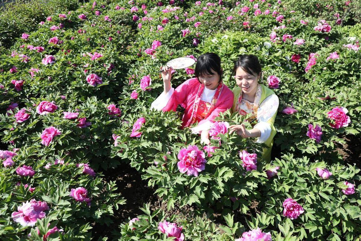 “五一”假期,在河北省唐山市丰润区燕沣园生态农场,竞相绽放的各色牡丹花吸引众多游客前来踏青赏花,享受假日春光。