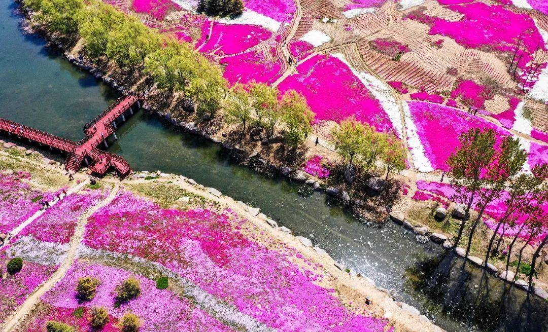 每年4月中旬至5月初,芝樱花进入了盛花期,成片的芝樱花沿着山坡肆意绽放,形成了花的海洋。在文登区界石镇晒字村,大片的芝樱璀璨盛开,放眼望去,漫山遍野恰似披上了一层色彩斑斓的锦缎,明艳动人。