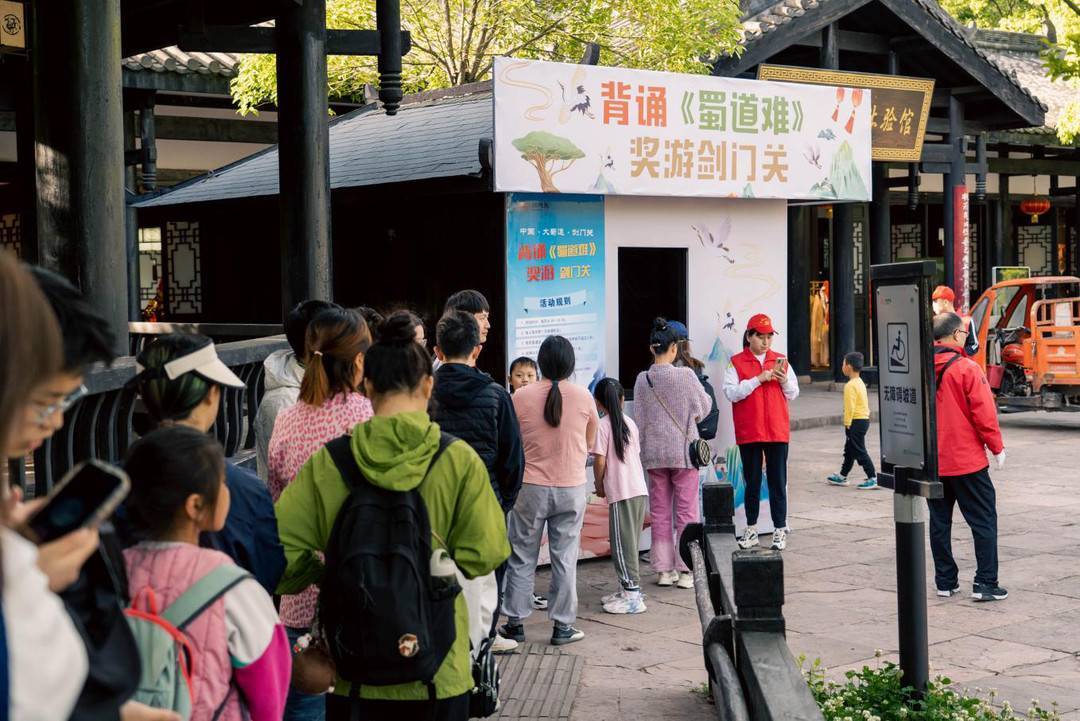 早上10点左右,景区检票口就已经排起了长队,参与背诵《蜀道难》的游客更是人潮涌动。“拿到门票我非常激动!”来自重庆的张女士开心地说,“来之前我和朋友一起在动车上反复练习,刚开始背时还是有点紧张,后来越背越顺畅。我会在朋友圈分享今天的喜悦,让更多的朋友来参与这项有意义的活动。”