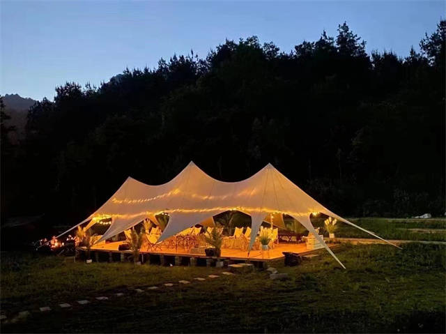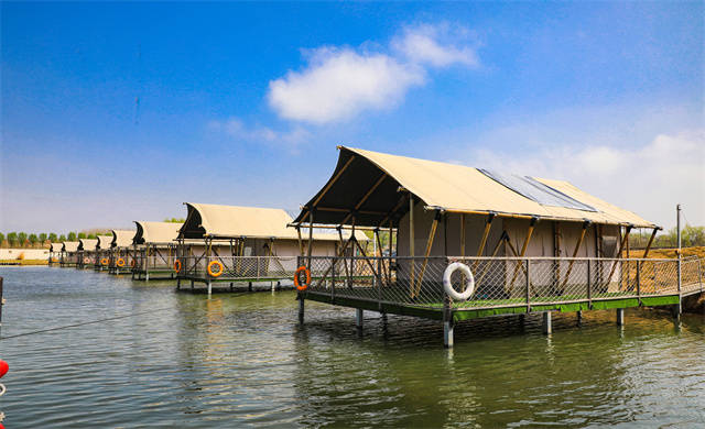到了夜晚,浓郁的香气勾动着每一个人的味蕾。特色桑麻宴、定制聚餐、DIY烧烤、烤全羊……曲径通往的是灯火通明的水上餐厅,数十种美食可满足不同群体的需求。饱餐一顿后,伴着星光,听着虫鸣悠然入眠。