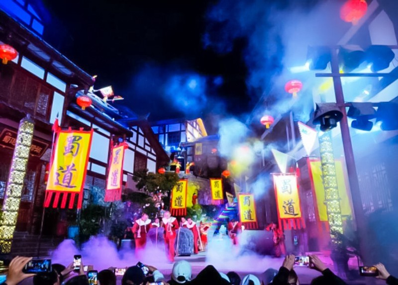 阆中古城水上盛宴《客来阆中》夜游演出,两岸系列灯组、光影秀和水上演出,广受青睐。南津关移动实景演出《蜀道盛世》,也成为游客心仪的游阆中必选项目。