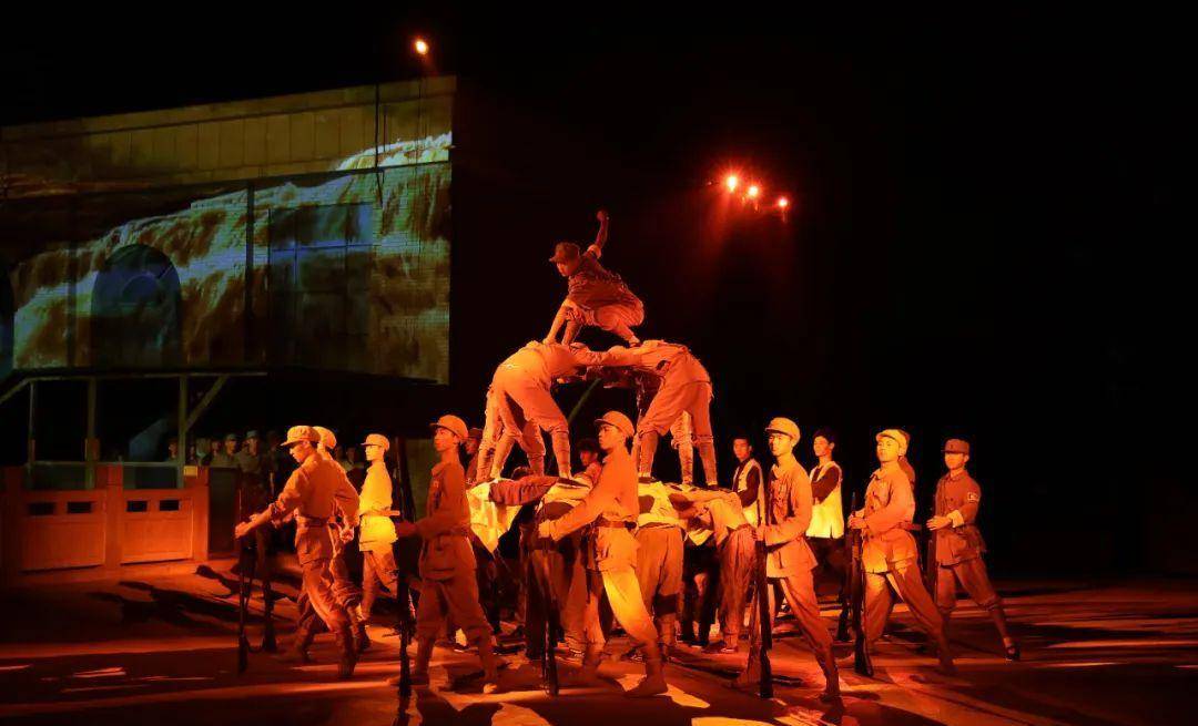 伴随着行进式的表演,观众身临其境,可以感受中央红军落脚延安时欢庆的激情与豪迈。