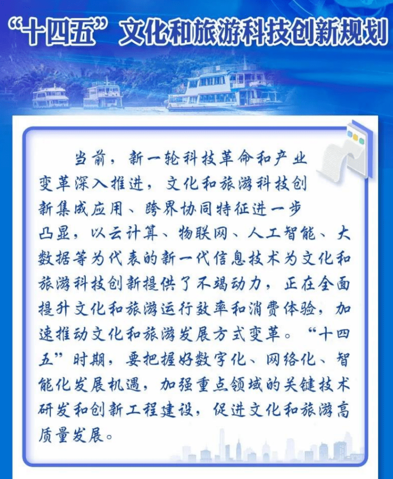 2021年4月26日,文化和旅游部发布《“十四五”文化和旅游科技创新规划》,研究5G、大数据、人工智能、物联网、区块链等新技术在各类文化和旅游消费场景的应用。
