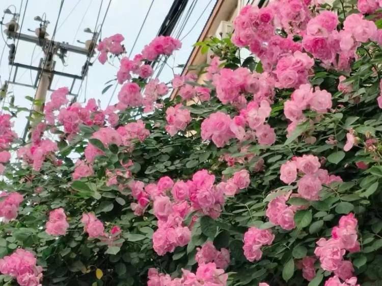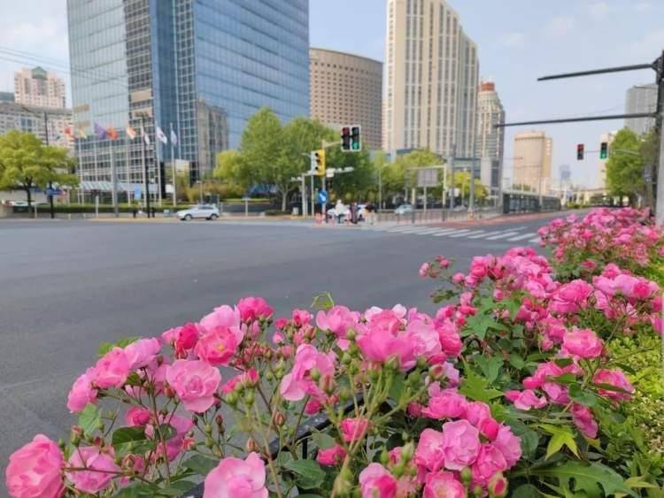 除了公园,长宁的马路上、居民区里,最近也常常能看到成片盛放的月季花,形成了一处处惹眼的风景,随手一拍就很出片。