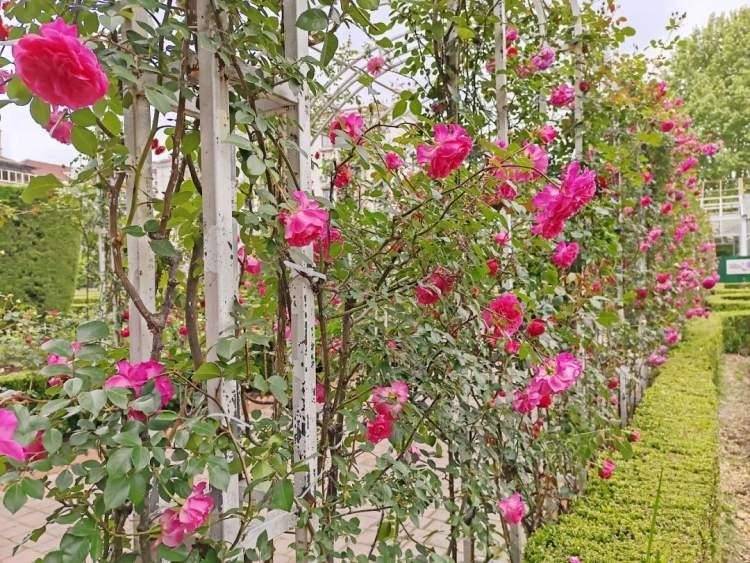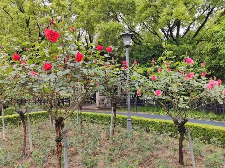 这处月季园主要种植的是树状月季,长得很高,视觉效果上令人耳目一新。月季花被誉为“花中皇后”,真是名不虚传。