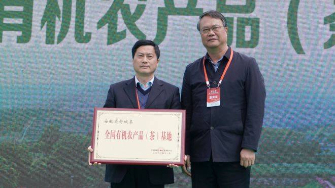 省农业农村厅领导代表农业农村部绿色食品发展中心给舒城授予了全国有机农产品(茶)基地标牌。