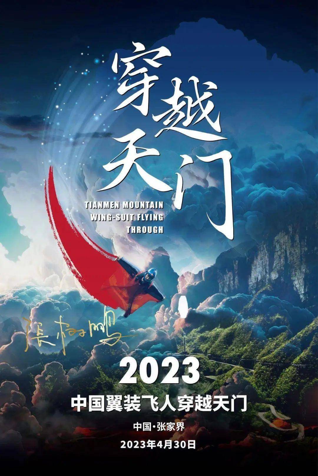 4月30日, 中国翼装飞行运动员张树鹏将在张家界天门山,挑战"翼装飞行穿越天门洞"。