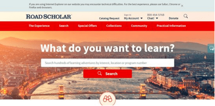 Road Scholar是一个非营利组织。它专注于老年游学项目,创新发展模式。在发展之初,Road Scholar就确立了老年旅游+教育的核心优势,通过在美国的各个州开发项目,迅速发展起来。目前,Road Scholar游学路线开发达到5500条,分布在美国的各个州,以及其他知名的、具有文化底蕴的国家和地区。