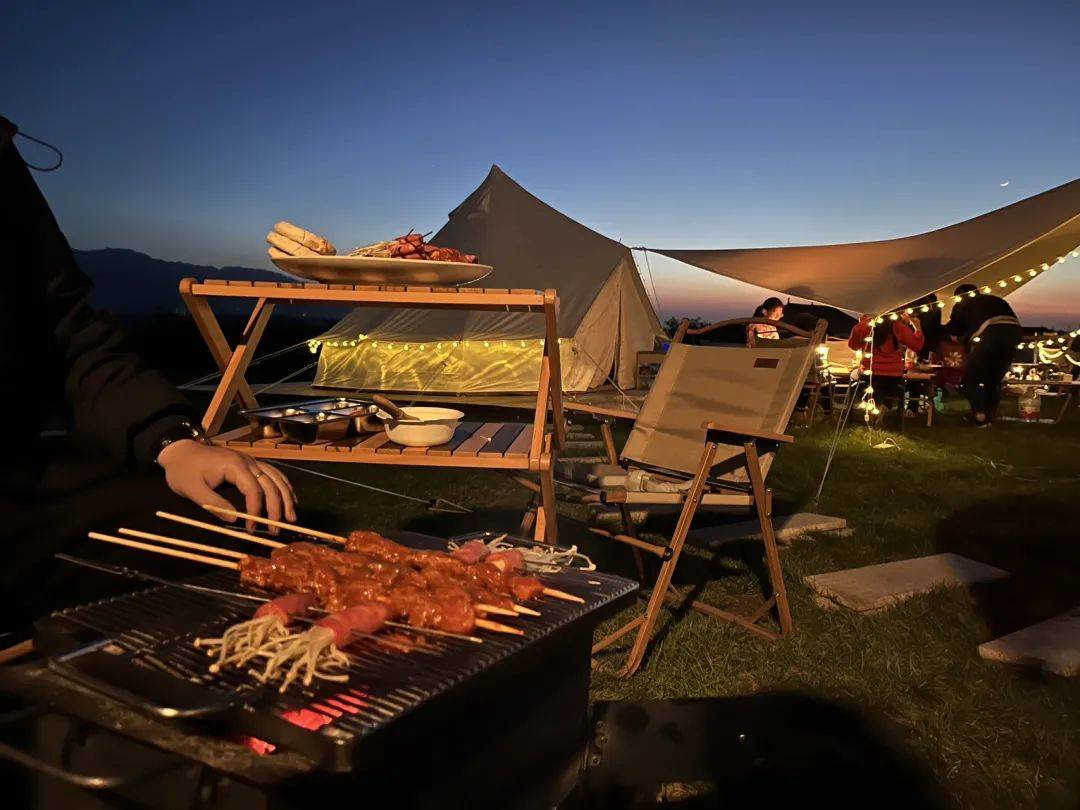 而在LUMMO营地里,夕阳染红了天空,烧烤、火锅,围着篝火起舞的人们,共同为今晚画上圆满的句号。