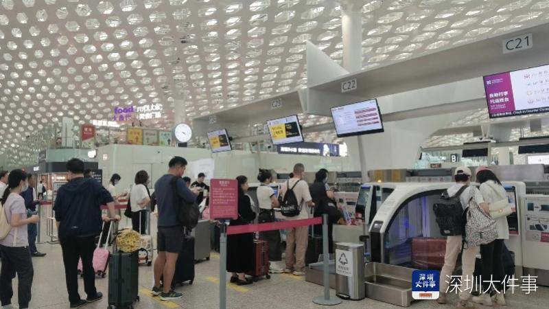 假期首日(29日),深圳机场码头也迎来出行高峰,今天旅客量预计将超3500人次,为平日3倍以上。