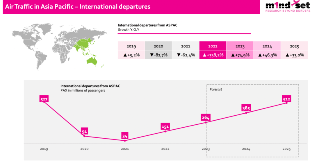 m1nd-set的首席执行官彼得莫恩说:“亚太地区要到2025年才能达到疫情前水平,届时交通客流量将再次超过5亿。