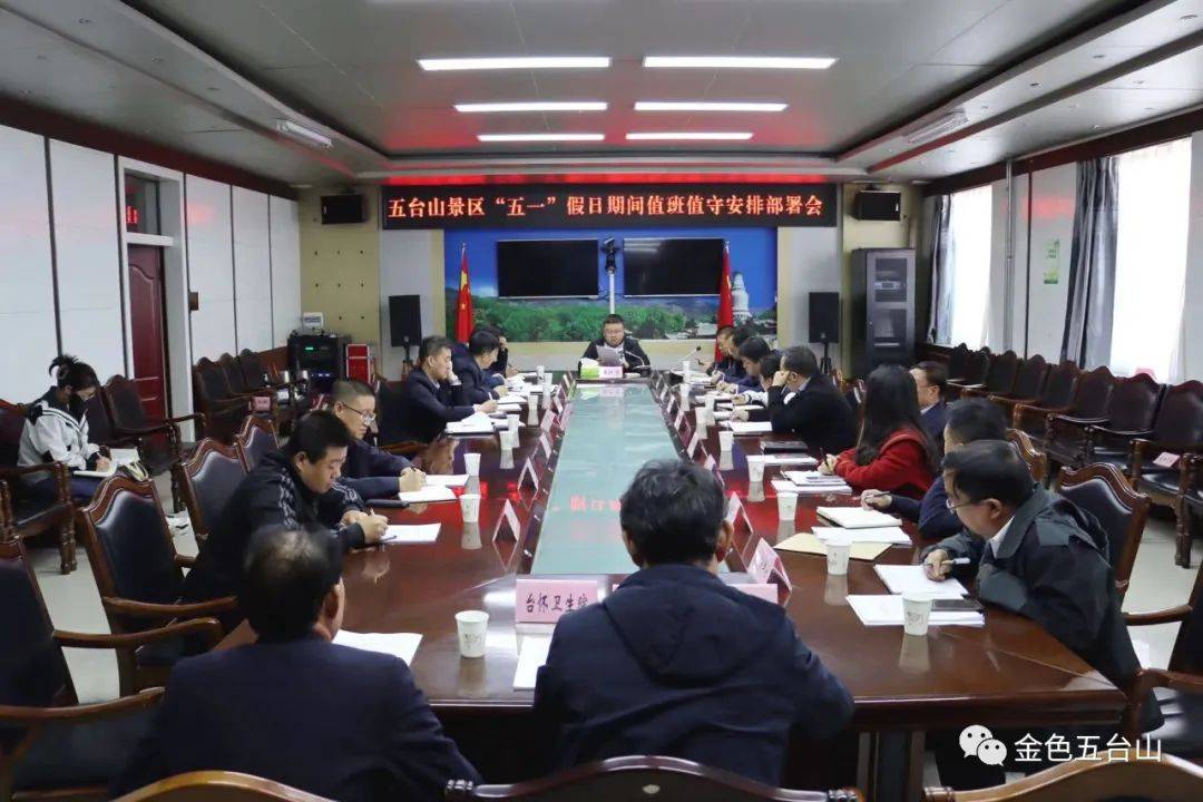 4月29日,五台山景区党工委委员、管委会副主任康晓蕾主持召开景区“五一”假日期间值班值守工作安排部署会。景区各相关单位负责人参加会议。