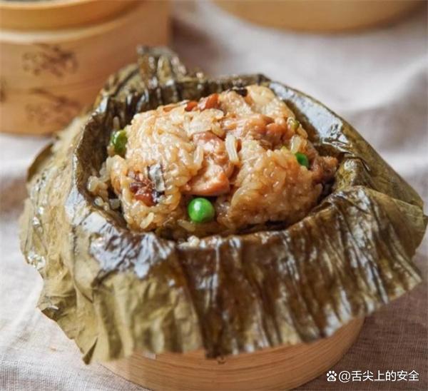 再次,叶子也是不同的。我国不同省份的粽子往往“就地取材”,利用芭蕉叶、竹子叶、芦苇叶等不同大型叶片来包裹,而糯米鸡只选择一种叶子——荷叶,取的是荷叶独特的清香,蒸熟后荷叶香气融入糯米中,让你老远就能闻到。