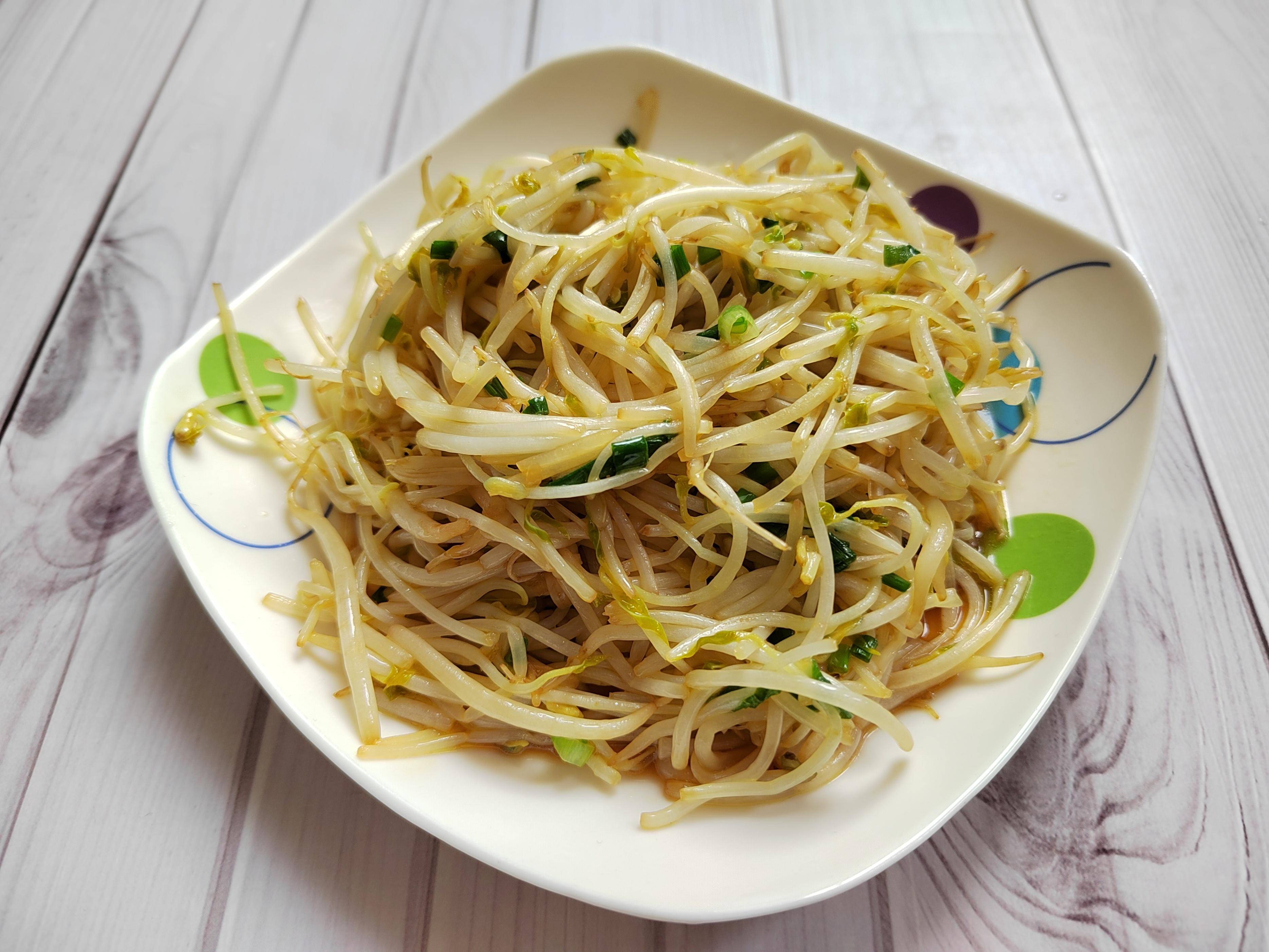 这道葱炒绿豆芽,虽然简单,但还蛮开胃的。香葱爆香后,放入绿豆芽爆炒,只需加一点盐调味就可以了,吃起来很爽口,卖相也不错呢!