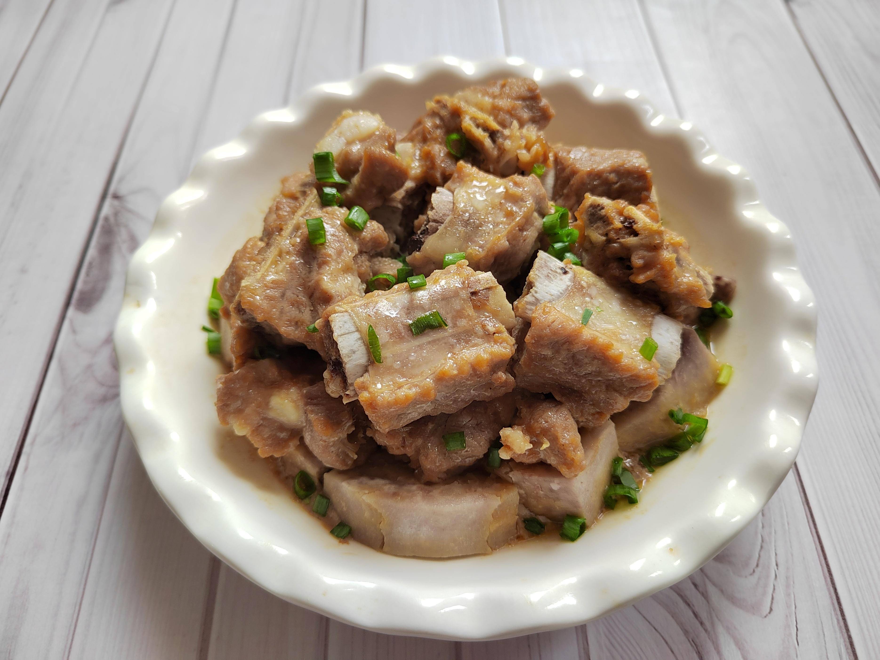 想要做好这道菜,食材很关键,排骨要新鲜,芋头要粉糯。排骨泡一会儿,挤干水分,加入少许盐、白糖、生抽、蚝油、料酒抓拌均匀,再加入少许生粉和花生油抓拌均匀,腌制两小时以上。芋头切小一点,摆入盘中,放入腌制好的排骨,放入开水锅中,大火蒸40分钟左右,就可以出锅了。