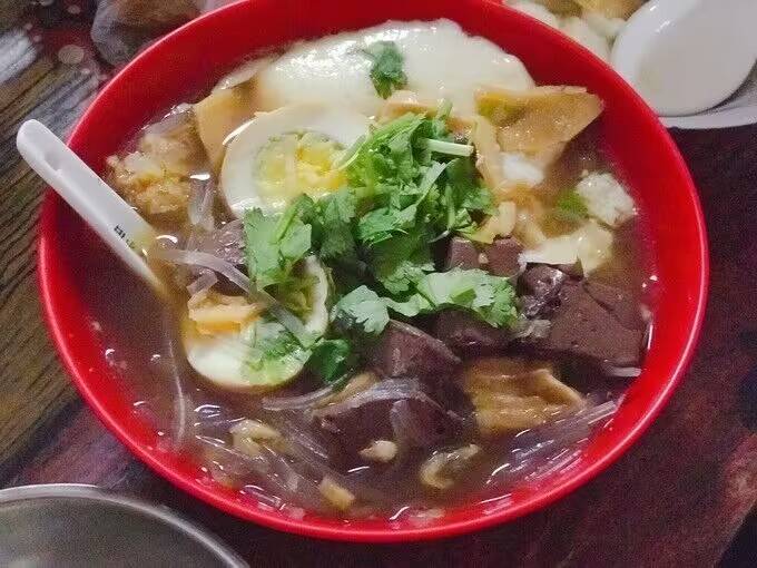 “豆花粉丝是一道色香味俱全的传统名点,产自福建漳州。所谓“豆花”,就是点了少量盐卤或石膏的豆浆,出现絮状的凝固物后,质地细嫩绵柔,因未成型,所以通称“豆花”。