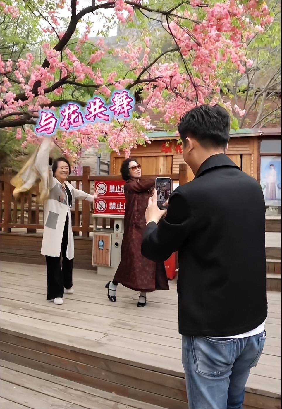 除了在清凉谷风景区内体验各种旅游项目之外,短视频中很多小细节也是蛮值得注意的,比如,当看到景区路边有卖土特产的时候,杨帆的母亲坚持要下车购买,于是就买了几个土鹅蛋;当看到清凉谷风景区内的樱花盛开了,两位老人就在花下翩翩起舞;当看到景区内有一处心形留影处的时候,杨帆不耐气氛地给她们拍照……
