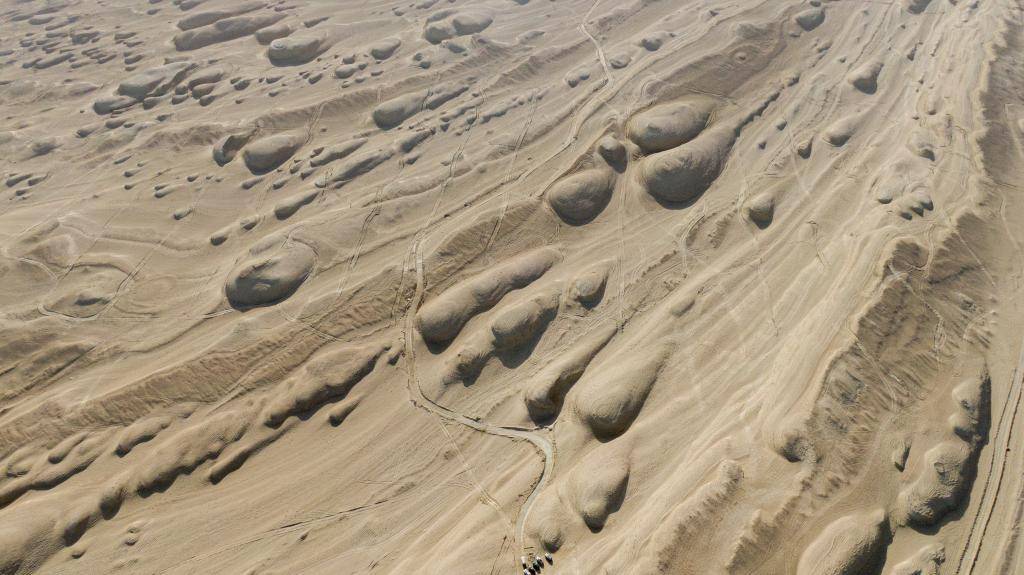 这是4月8日在“火星一号”公路旁拍摄的雅丹群。新华社记者 顾玲 摄