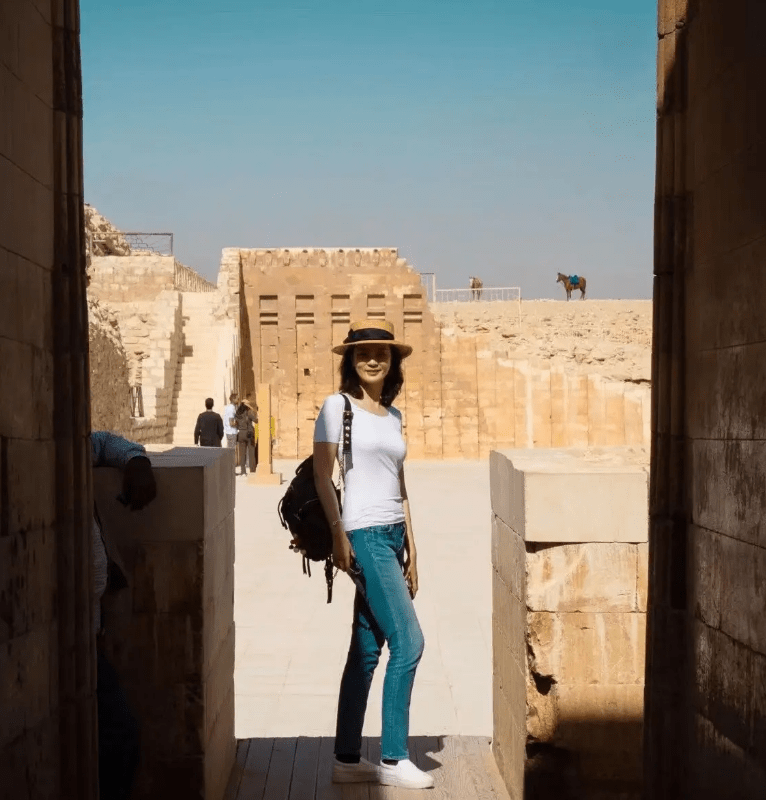 站在金字塔内部的通道、站在狮身人面像面前、站在胡夫金字塔面前……刘芳菲此次在埃及各个标志性景点前打卡留影,好不热闹,就在大家还在思考这个五一将要去哪里游玩的时候,刘芳菲的答案无疑是更加干脆,那就是去遥远的非洲大漠,去古老文明的开罗,说到底这是一次文明探寻之旅。
