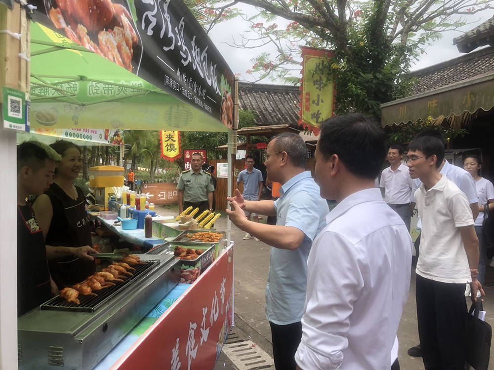 中共定安县委书记刘峰松到美食一条街调研。陈磊 摄影