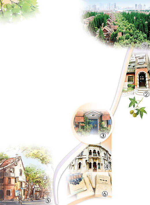 图①:山阴路历史风貌保护区中溧阳路沿线花园洋房。 四川北路街道供图 图②:多伦路文化名人街上的“左联”纪念馆。 图③:山阴路恒丰里修缮后的民居。 四川北路街道供图 图④:位于多伦路文化名人街的“孔公馆”,是上海市第一批优秀历史建筑。 图⑤:山阴路街景速写图。 王梓含绘 图⑥:“1927·鲁迅与内山纪念书局”中展出的部分书籍。 图②、④、⑥均为吴韧彦摄(人民视觉)