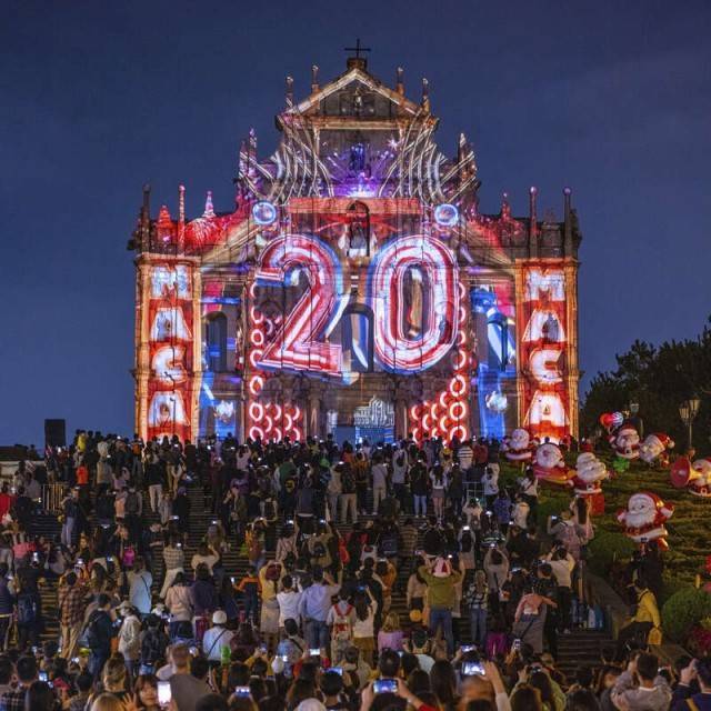 大三巴牌坊,庆祝澳门回归20周年的光雕表演。陈显耀(澳门)/摄