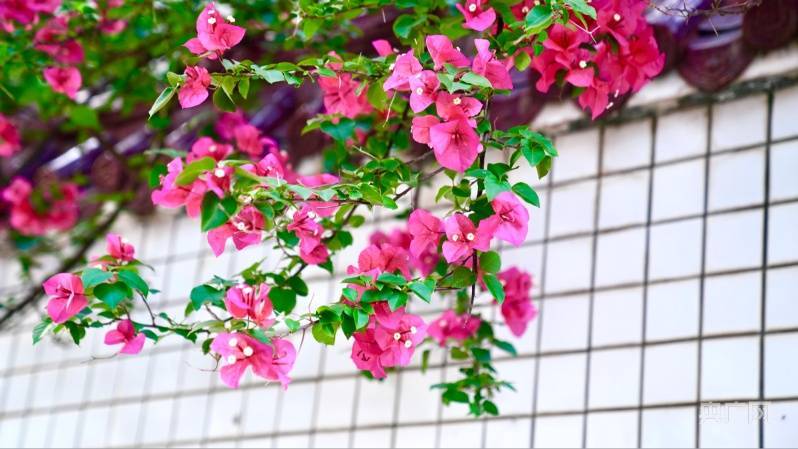 央广网上犹4月30日消息(记者邓玉玲)春风十里处处花。随着气温逐渐升高,三角梅迎来了一年中最美的季节。在江西省赣州市上犹县,城区里、小街小巷里、门头院墙上,三角梅花开艳丽。古人有诗云:一树妆红缎,细花藏叶苞。纵然形色误,朵朵笑枝梢。