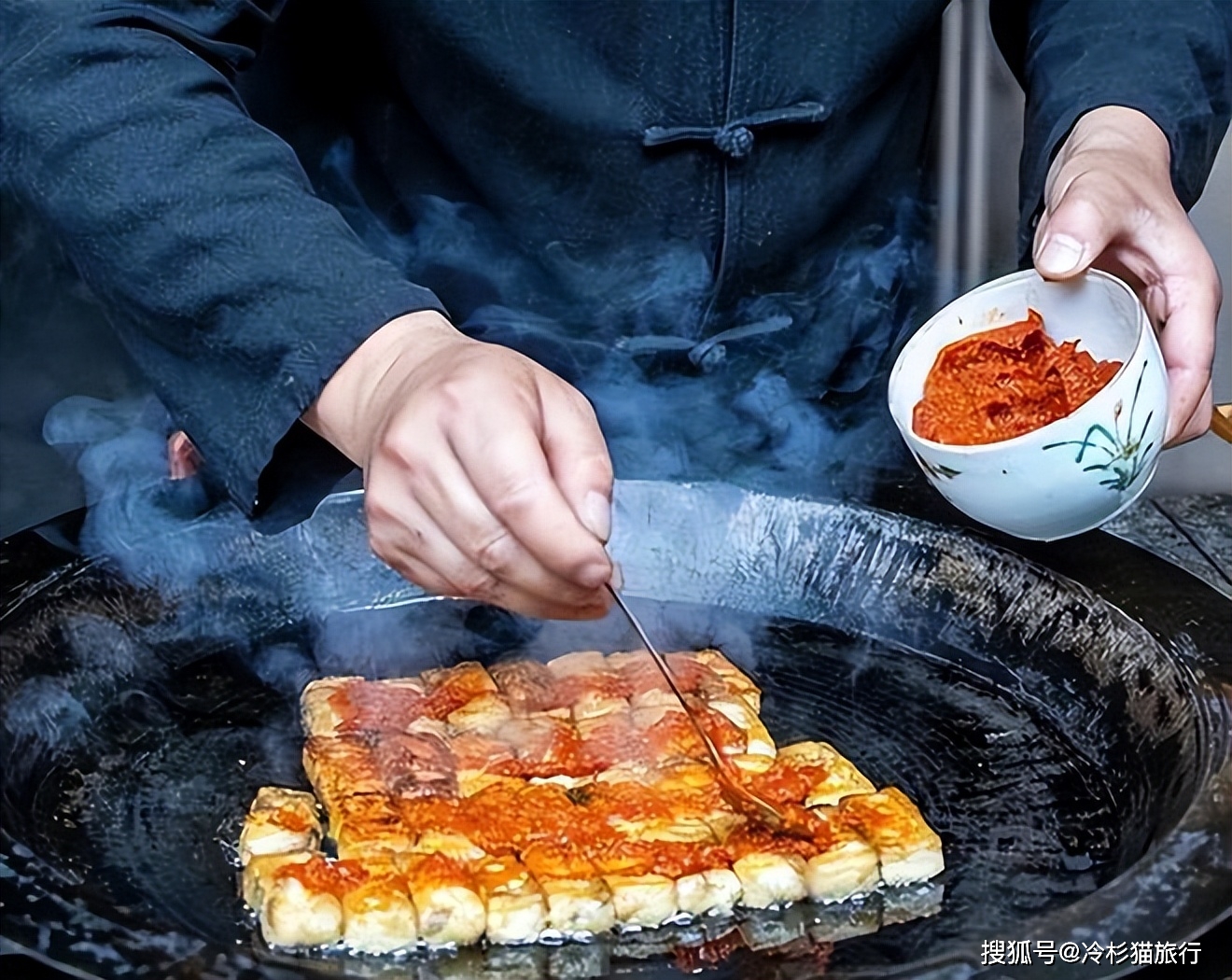 在黄山路边的小摊上,商贩也会把毛豆腐与铁板结合起来,可以品尝到不一样的口感。