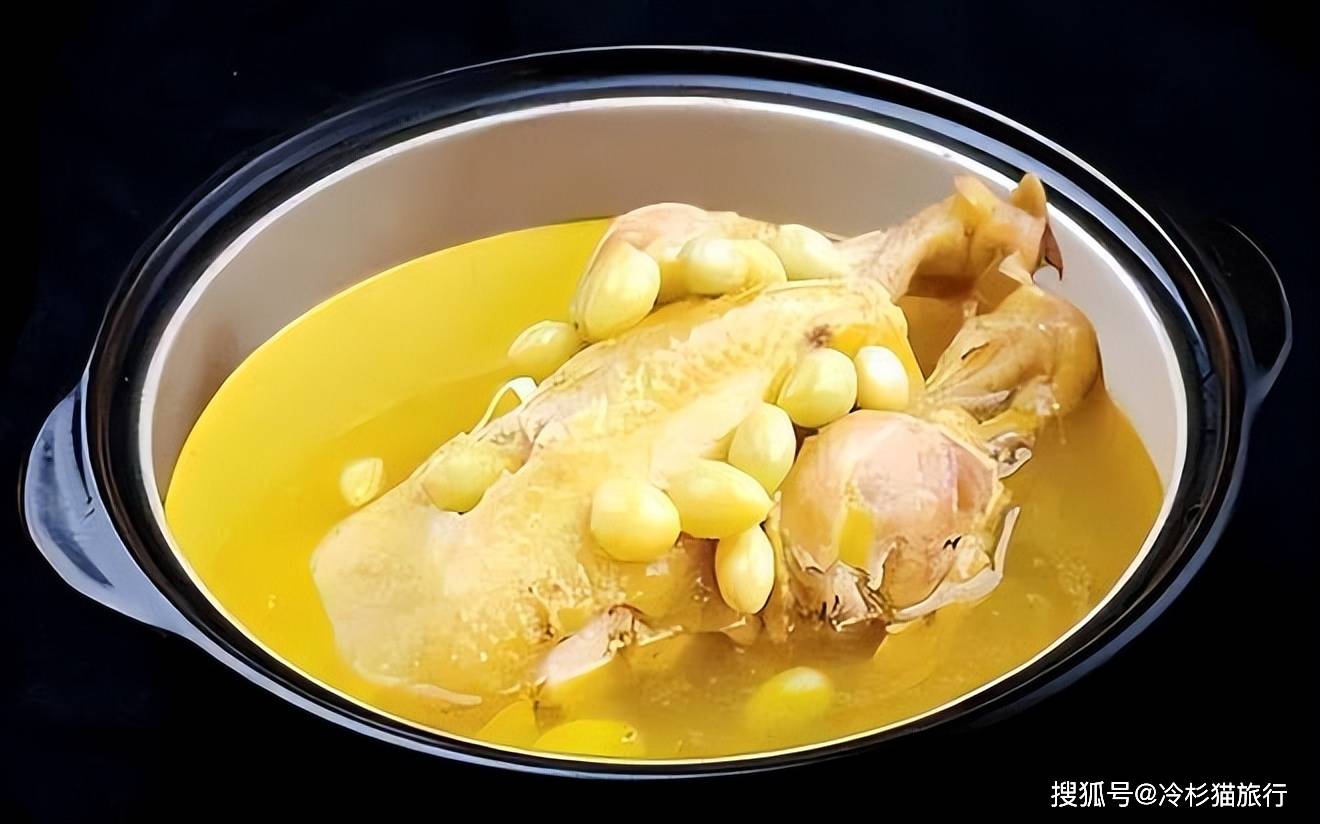 白果炖老鸭主要原料是产在桂林兴安,灵川一带的白果和老鸭,用文火清炖而成,其特点是汤微苦,果香肉甜,营养丰富,四季皆宜。