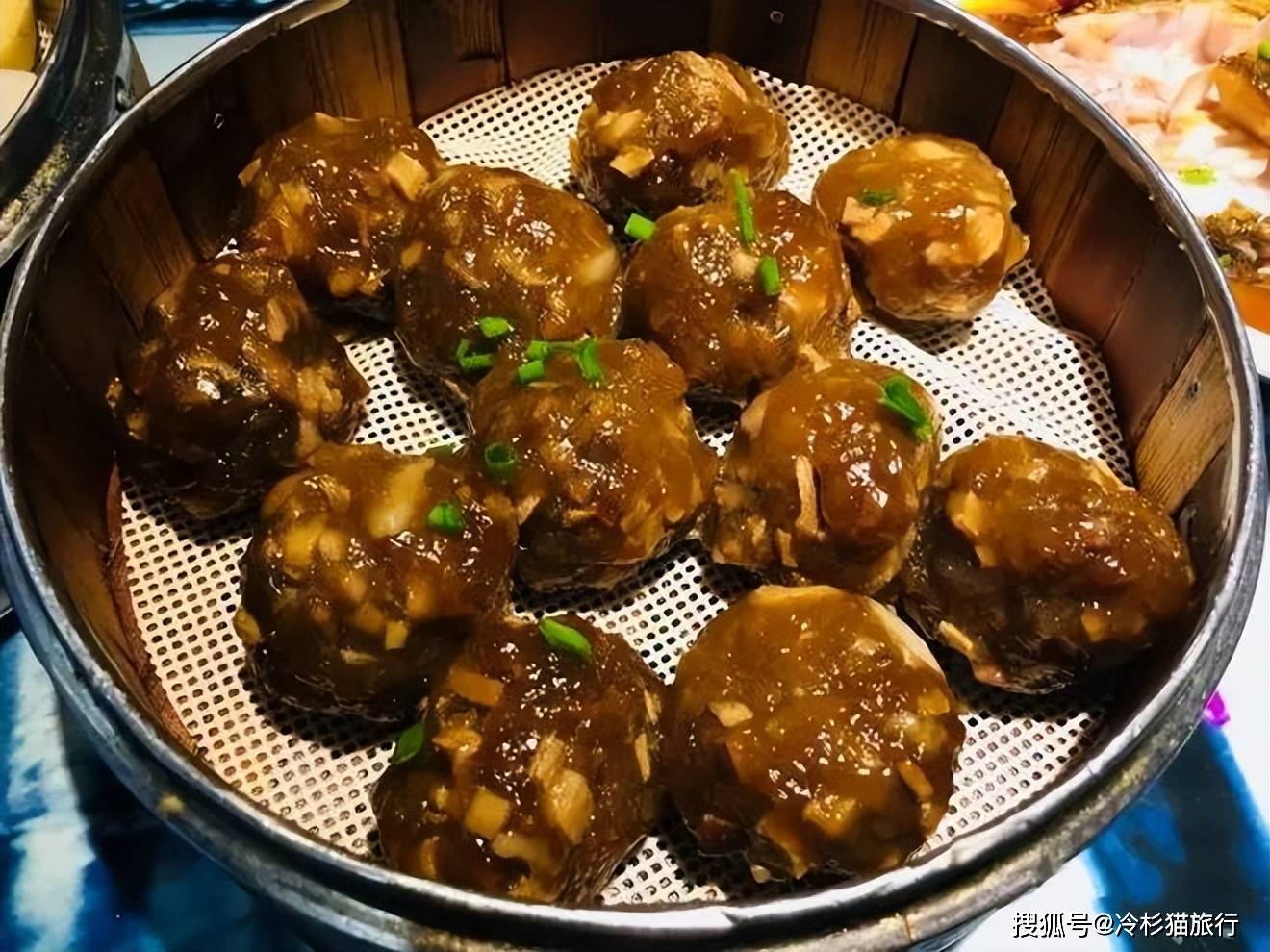 它是将各种馅料等切细,和入葛粉中做成丸子。蒸好的葛粉圆子劲道柔韧,入口生香。