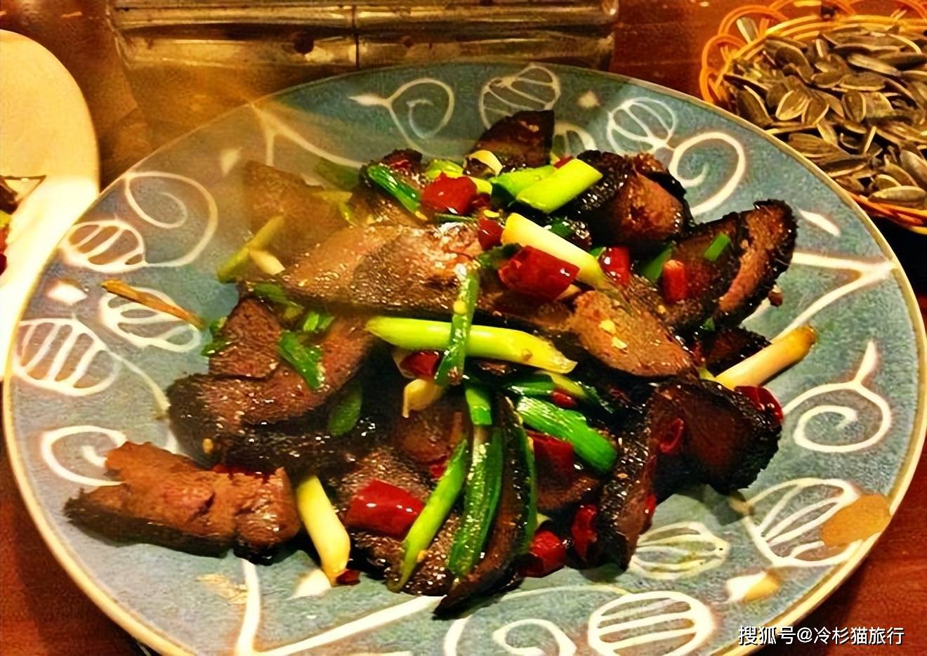 它是土家特色菜,通常切片用大蒜、辣椒炒,别看外表黑熏熏的,却是耐嚼味香。