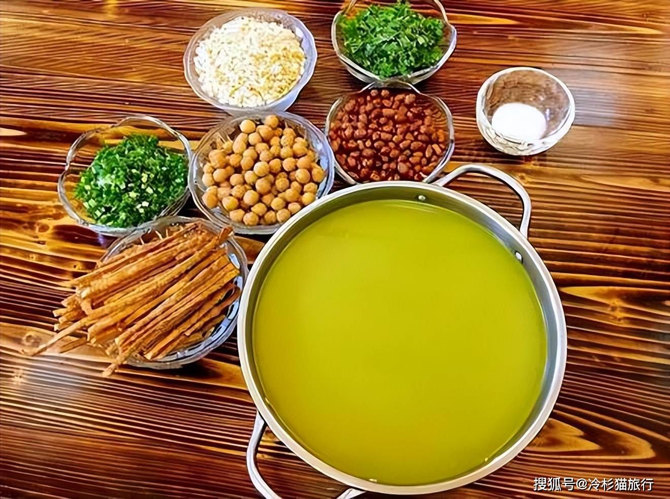 油与茶叶的奇妙结合,加入生姜与盐调味,香醇中带着一点苦涩,在热辣中又带着一些香脆。喝油茶时要慢慢品尝,好好领略。