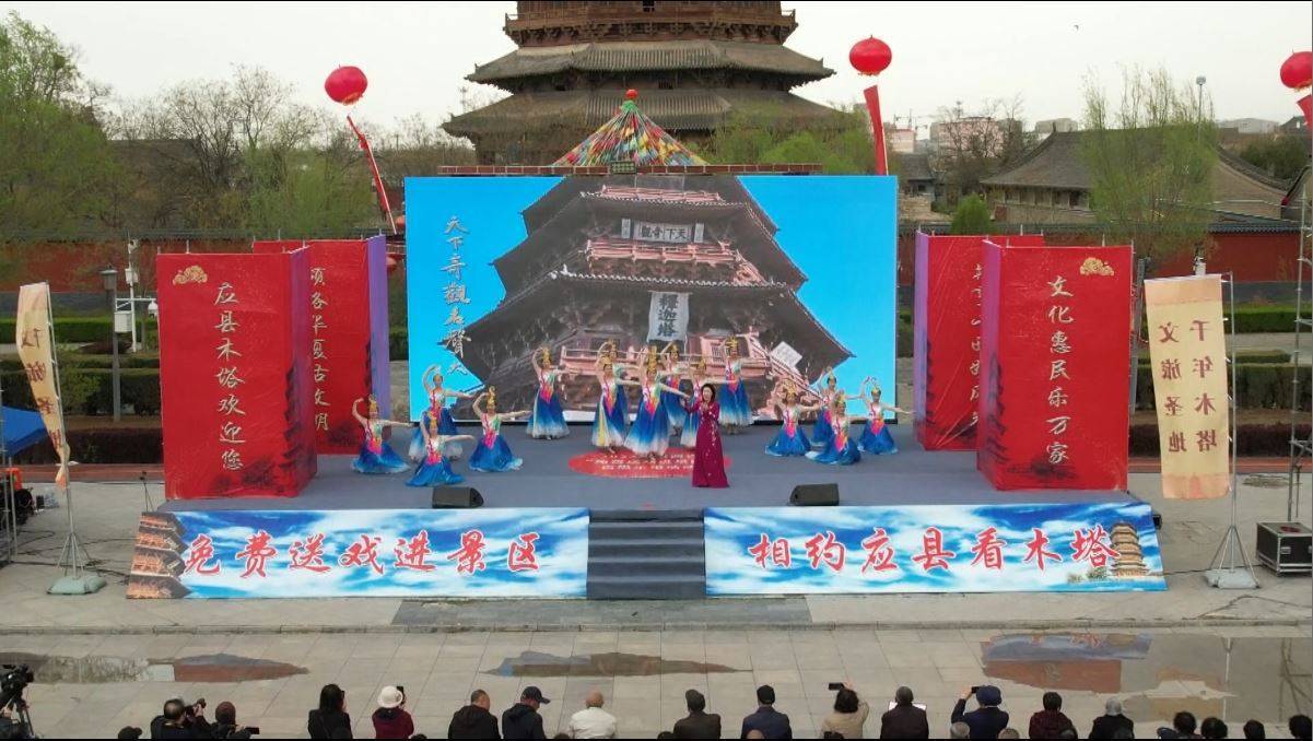 山西日报记者袁兆辉报道 4月28日,2023年山西省“免费送戏进景区”省级示范活动在应县木塔景区精彩上演,戏曲名家们纷纷登台,展现戏韵歌声,以饱满的热情喜迎八方来客。