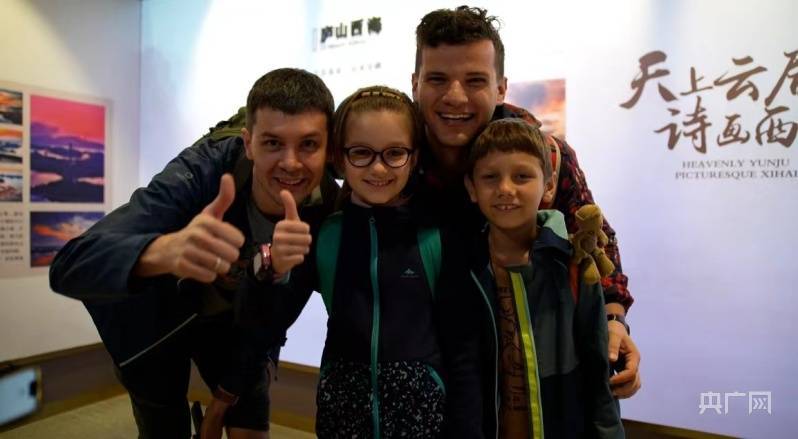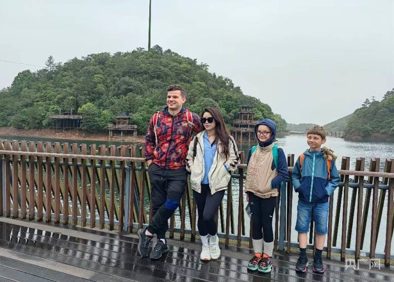 乌克兰游客玛克西姆(Maksym Kniaziev)带着孩子达尼拉和丽塔,一起到庐山西海旅游。他对庐山西海的温泉、美食赞不绝口,而孩子们对云居塔的中国诗词和岛屿充满了兴趣,不时点击屏幕互动,感受中国文化的魅力。
