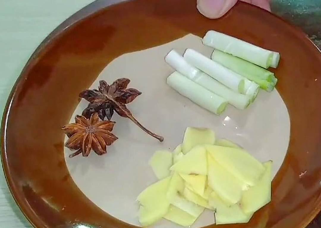 然后我们可以准备一下葱段、姜片和八角备用。做糖醋排骨不适合放过多的香料,因为香料的味道会压住排骨的味道,口感就不会太好。