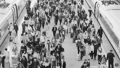 图③ 4月29日,旅客在徐州东站下车出站。 “五一”小长假,铁路部门最大限度挖掘运输潜力,增加运力投放,预计开行列车11873列。 新华社发