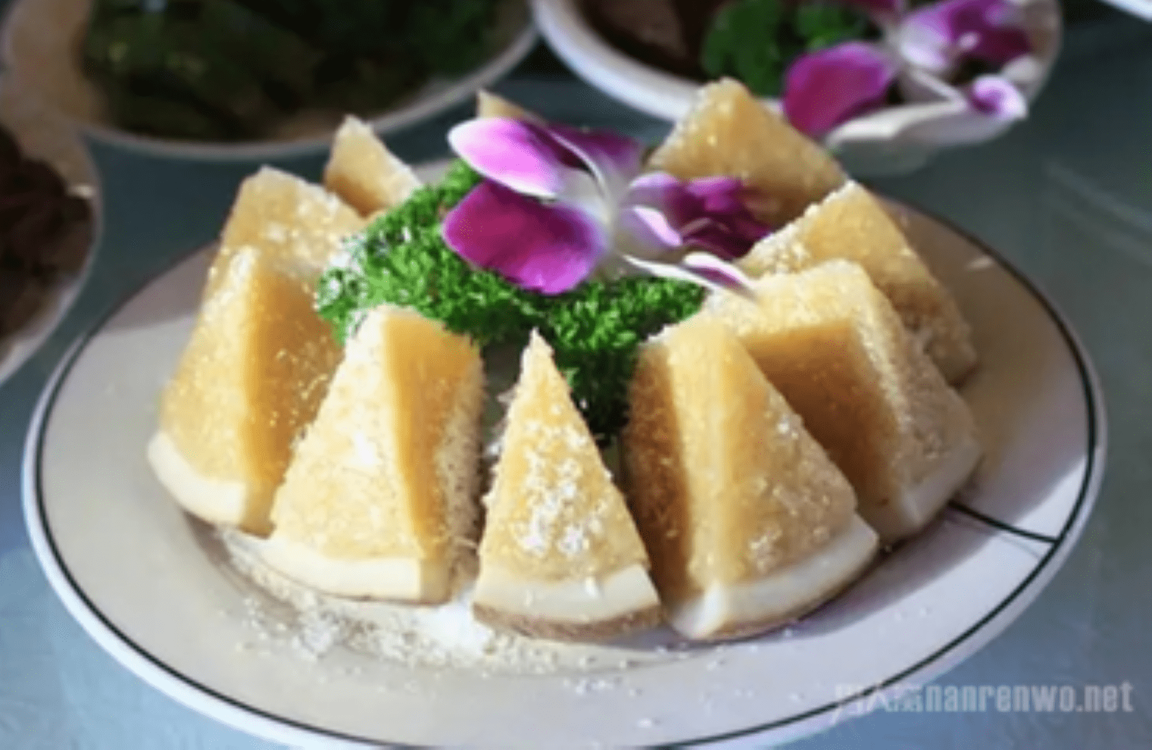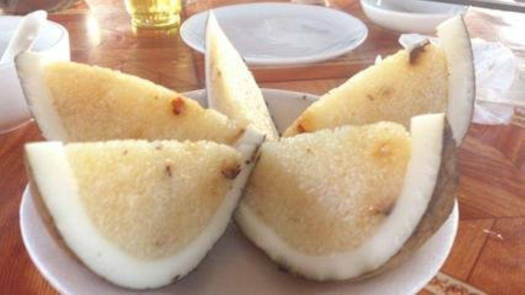 特点:椰子肉和糯米紧密结合,色泽洁白干净。米粒晶莹剔透,酷似珍珠(因此得名“珍珠椰子船”)。慢慢细嚼,椰子香气浓郁,甘甜爽口,回味无穷。