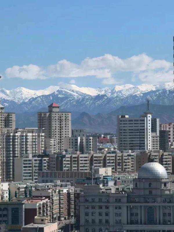 我是在天山区一座大楼的16楼拍下雪山照片的,第一眼感受:哇塞,好美!原谅我词语比较匮乏。(在乌鲁木齐),既能看到连绵的山脉,壮阔的雪山,又能看到城市。