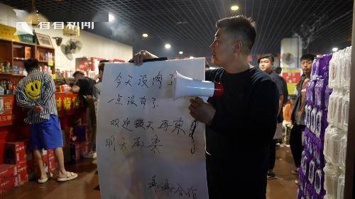 烧烤店老板杨本新,无奈开始“撵客”。店里店外,人声鼎沸,杨老板“劝退”的声音被淹没在嘈杂声之中。他只好拿着扩音喇叭,一遍遍地喊:“没有肉了,不要排队了。”