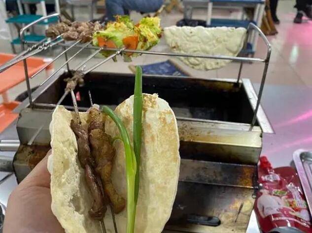 据了解,淄博烧烤的特点在于使用本地特色的小饼,再加上摁进盘里的蘸料,再夹上小葱,最后把烤串包在饼里用力一撸,抽掉铁签,开吃!这种独特的口感,让吃过的人都忍不住为之倾倒。因此,近期来自全国各地的游客都涌入淄博,只为了品尝这种烧烤。