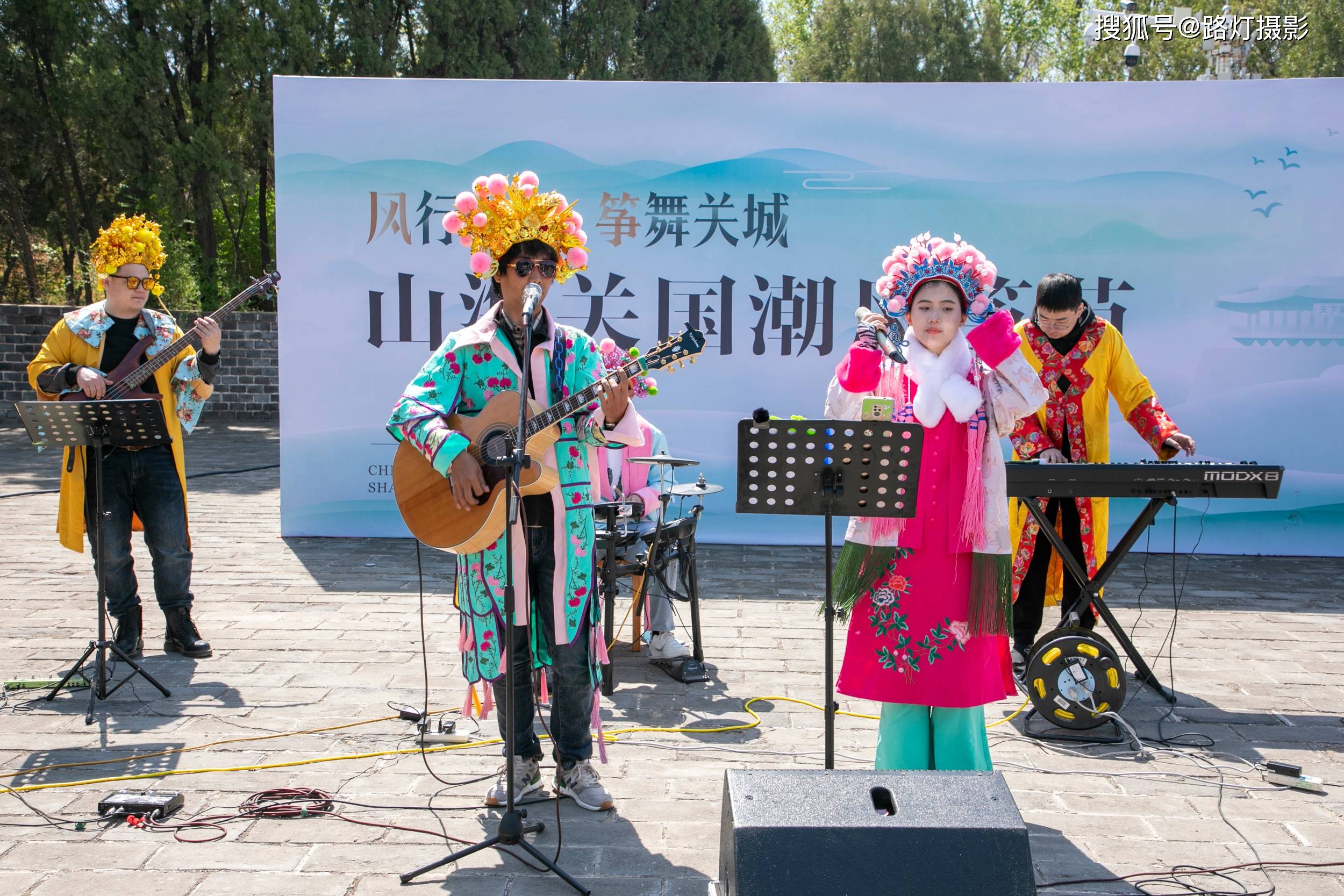 在这春和景明的日子里,人们身着不同款式的汉服,手持纸鸢在龙首相聚一起品茶、插花,身穿节日盛装的国潮乐队带来的古风、民谣等多种风格的曲目,欣赏漫天风筝飞舞的同时,感受音乐和艺术的魅力。