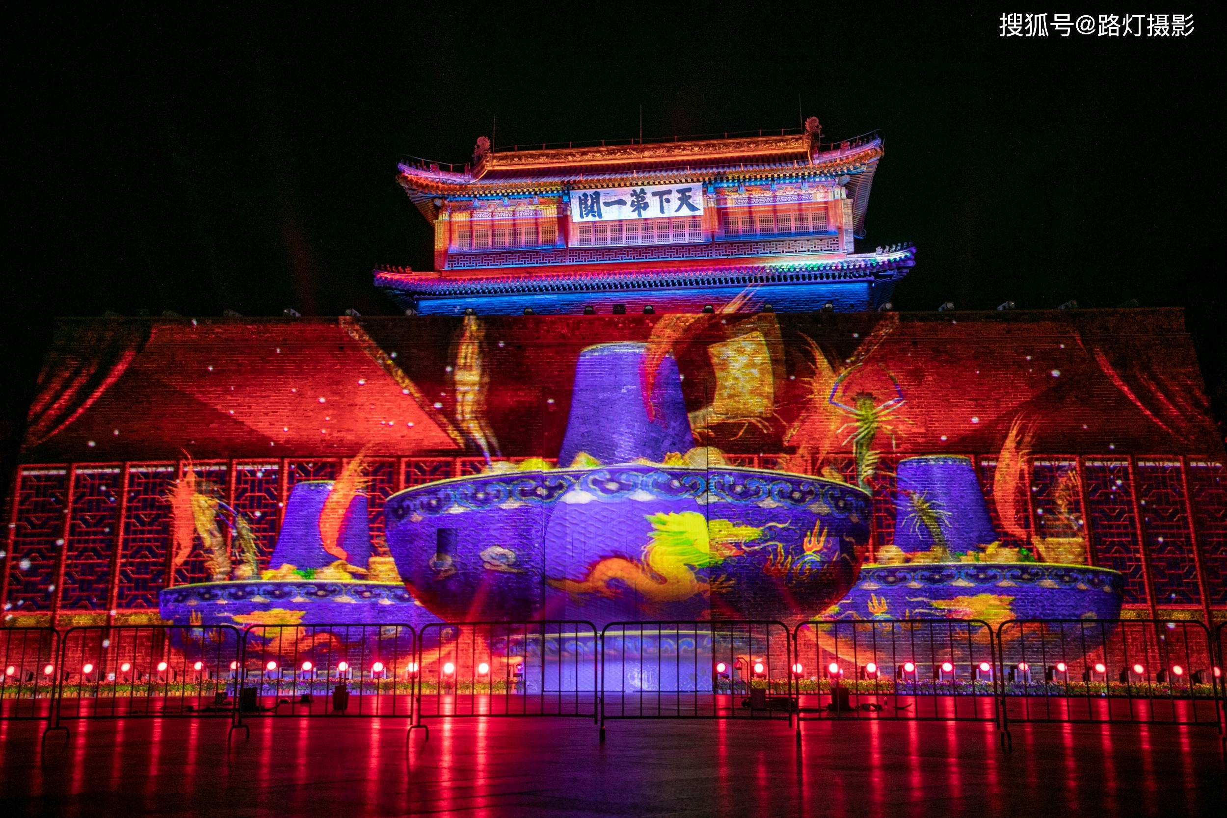 另外,五一期间天下第一关可以实现首次夜景登城,看完光影秀就可以凭夜票,穿过时空隧道登上城楼了。