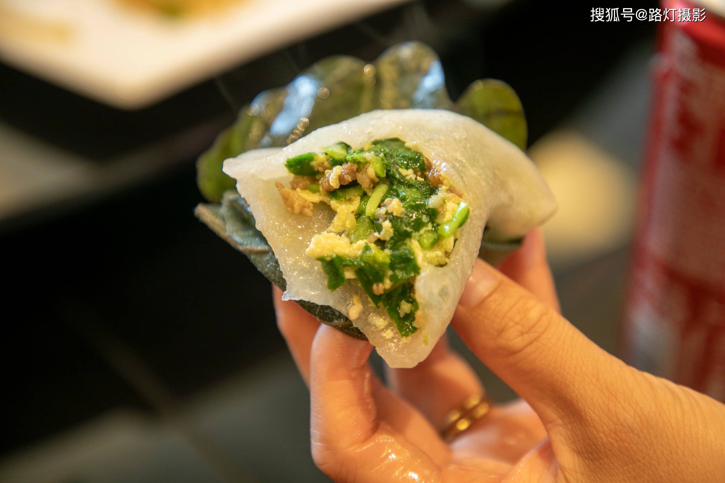 现在的桲椤叶饼多以韭菜、猪肉、虾仁为馅料,熟了的桲椤叶饼皮隐约透明,味道三鲜和着桲椤叶散发出的沁人清香,实在是一道美味佳肴!