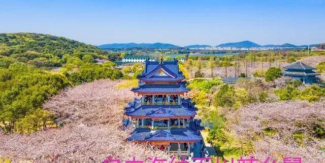 江苏无锡太湖景区的樱花盛开,万亩樱花与青山相映成趣。