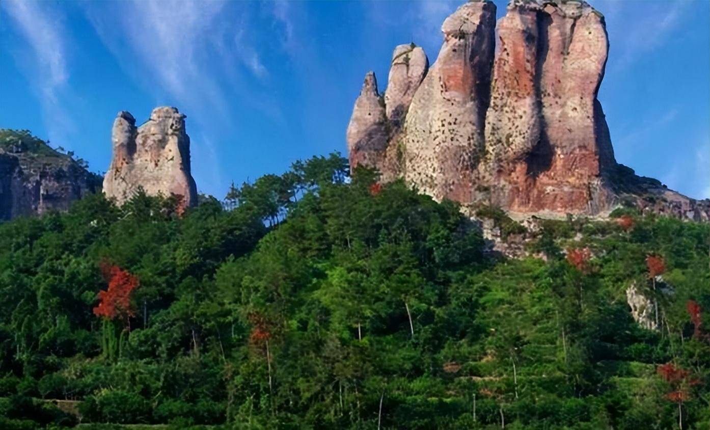 这些岩柱高度不等,最高的可以达到30米以上,形态各异,有的像针尖,有的像宝塔,有的像蘸墨的毛笔。