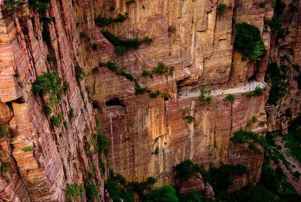 当然,郭亮村最知名的景点,还要数“挂壁公路”,想必很多朋友都在视频中见到过这条公路。上世纪90年代,郭亮村是一个非常贫穷的山村,而贫穷的原因就是道路不通,为了打通与外界的道路,在村支书的带领下,开始了全村集资修路的宏伟工程,前后共历时五年,终于在悬崖峭壁之中开出了一条高5米、宽4米,全长1250米的挂壁公路。