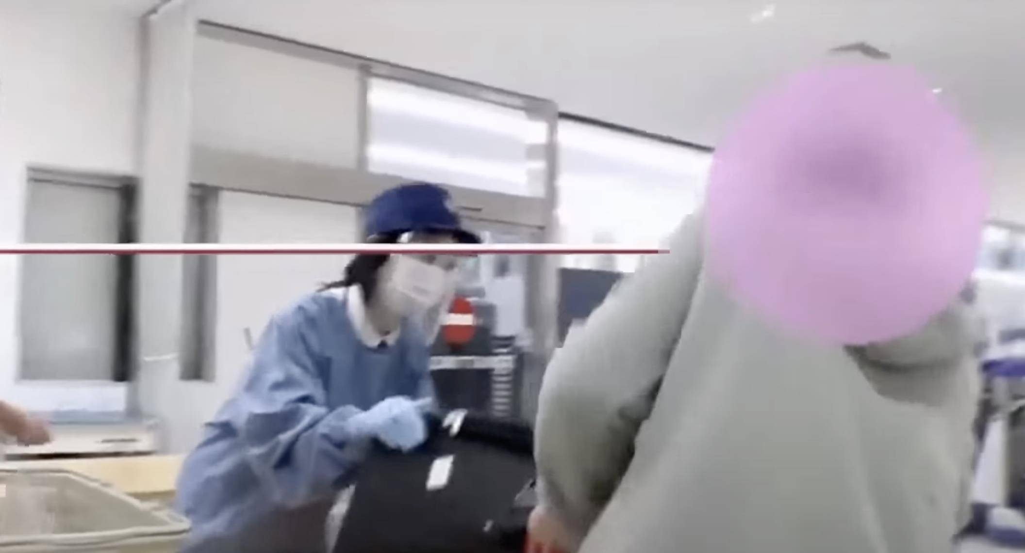 发现携带大量猪肉制品被扣后大妈开始和工作人员抢夺